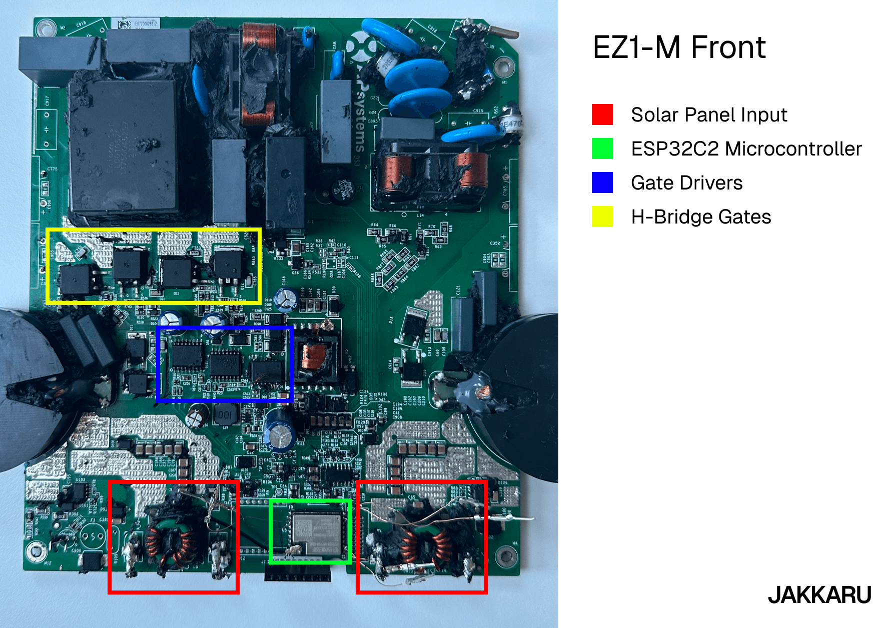 During the drafting of our initial report from last year, we contacted Valentin Conrad from TU Darmstadt, who had dumped the EZ1-M firmware for his master's thesis on microinverter security. He provided us with the opened inverter and firmware for analysis.