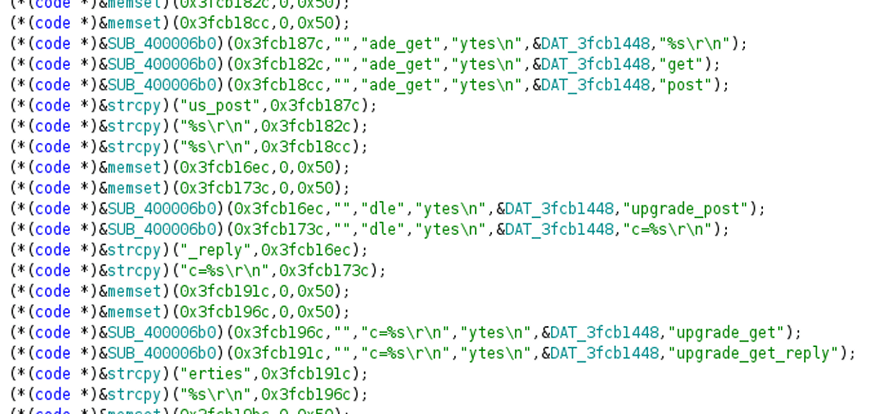Before connecting to the MQTT server, we attempted to locate topic strings within the firmware, but the strings were concatenated and difficult to trace in the disassembled view.